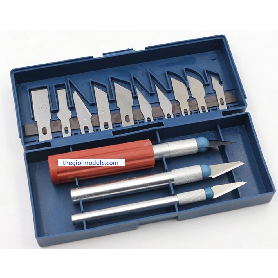 Bộ dao khắc 13 in 1 có các lưỡi dao được làm từ thép Cacbon, Bộ dao khắc trổ 13 in 1 sẽ giúp bạn khắc , chạm trổ tinh tế để tạo ra các sản phẩm độc đáo trên nhiều chất liệu như: kim loại, gỗ, nhựa …