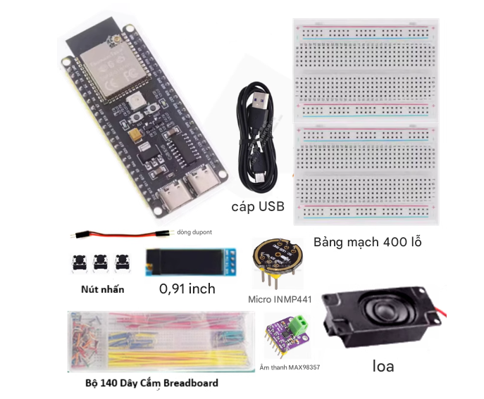 Bộ kit phát triển AIoT (AI + IoT) dựa trên bo mạch ESP32-S3-N16R8 là bộ sản phẩm được thiết kế cho mục đích học tập và phát triển các ứng dụng LoT (Internet of Things) và AI (trí tuệ nhân tạo)