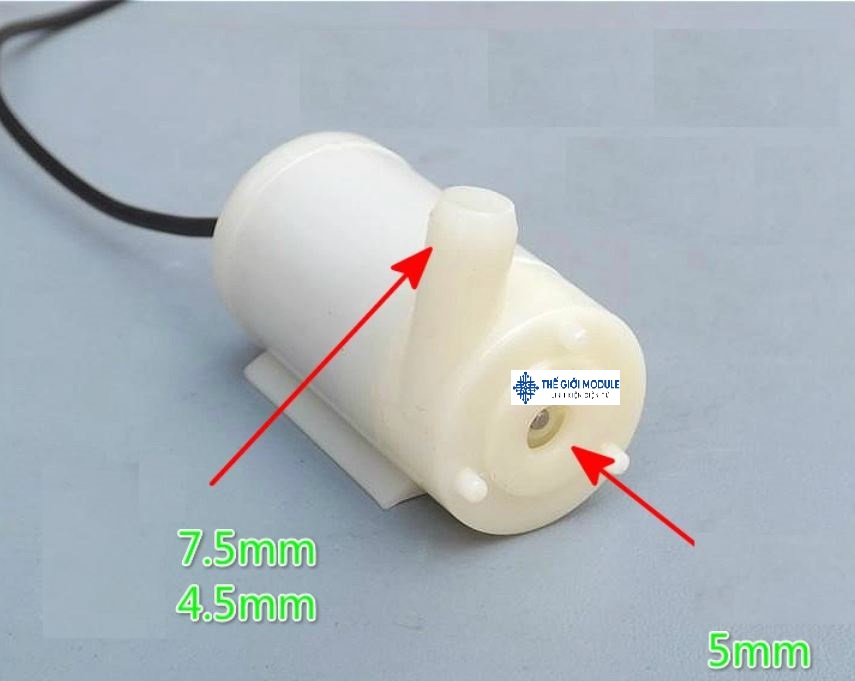 Máy bơm chìm mini với điện áp sử dụng trong khoảng 3 - 5VDC, dùng bơm nước với độ xa lên đến 1.5m.