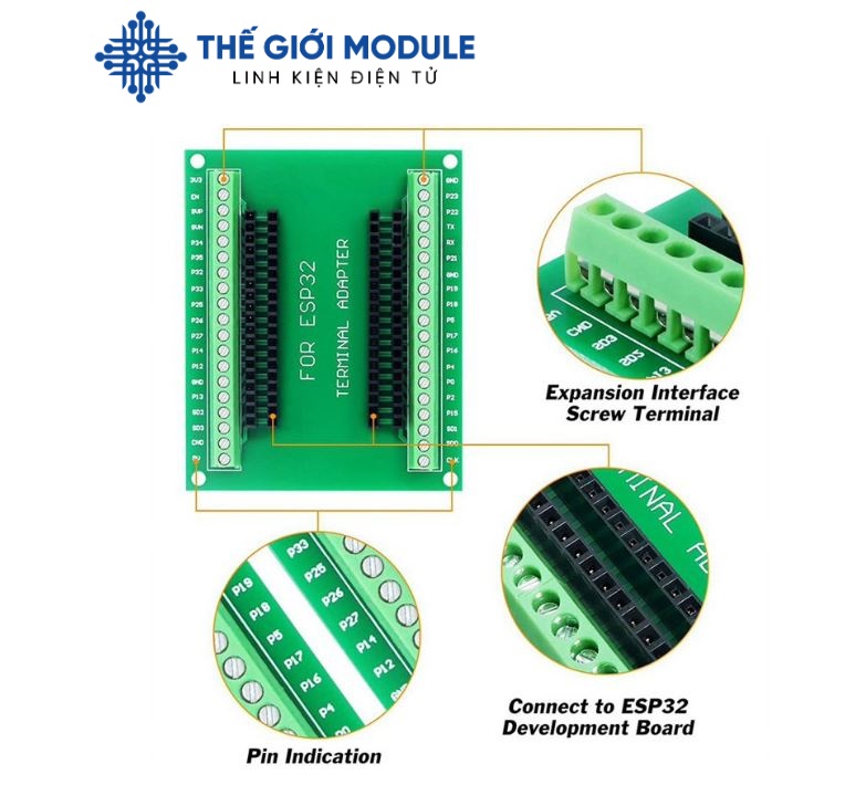 Board mạch nối các chân của module Wifi thông qua ngõ ra domino. giúp cố định board mạch hoạt động ổn định.