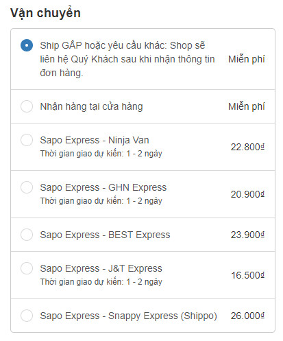 Nếu Quý khách ở khu vực Tp. HCM có thể chọn phương thức: Ship GẤP hoặc yêu cầu khác để sử dụng dịch vụ giao hàng siêu tốc hoặc grab 4h