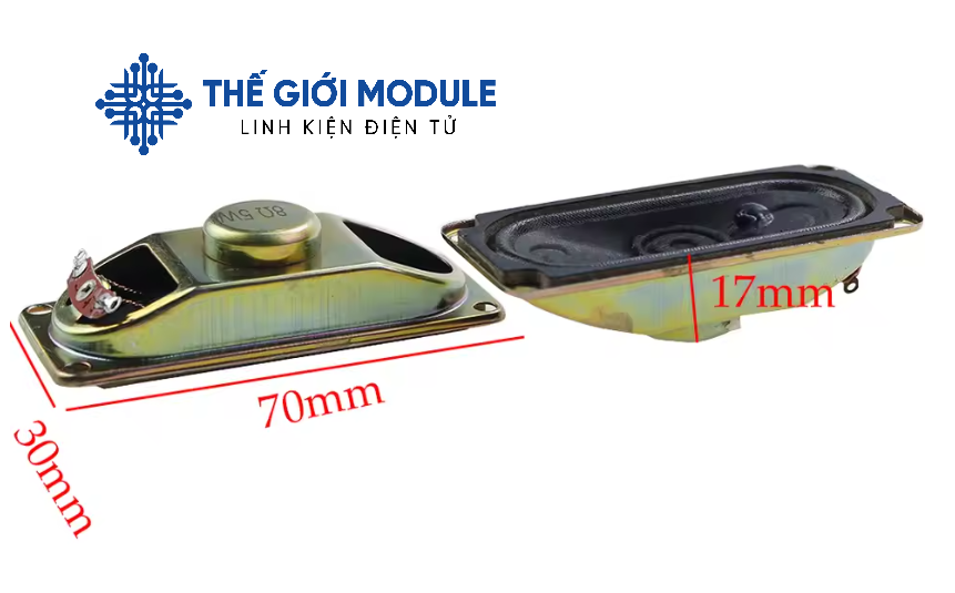 Loa 8 ohm 5W chữ nhật 3x7cm: Kích thước: 30x70mm Bề rộng: 18mm Trở kháng: 8 ohm Công suất: 5W