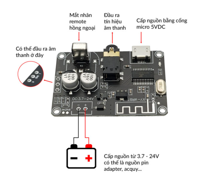 Mạch giải mã âm thanh Bluetooth 5.0 từ các thiết bị phát Bluetooth như điện thoại, máy tính, tivibox. Hỗ trợ phiên bản Bluetooth mới nhất version 5.0, không kén thiết bị, chất lượng âm thanh tuyệt vời, không có hiện tượng nhiễu, rè. Mạch sử dụng được cho hầu hết thiết bị có trên thị trường. Đặc biệt hỗ trợ cho cả thiết bị Tvbox của Xiaomi (Mibox) nổi tiếng rất kén thiết bị thu Bluetooth âm thanh.