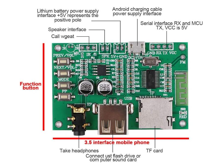 + Hỗ trợ cuộc gọi qua blueooth, các nút nhấn điều khiển đa năng, bài nhạc cuối cùng đang phát, lặp lại, phát/tạm dừng. điều chỉnh âm lượng và các chức năng đơn giản khác