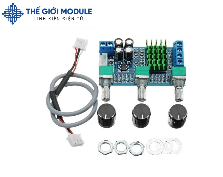 Kèm tản nhiệt, 3 biến trở volum điều chỉnh âm lượng, bass, treble