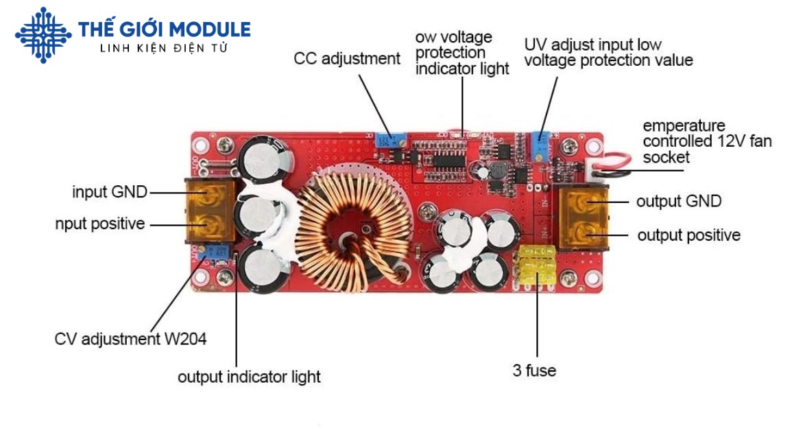 Mạch tăng áp Boost DC-DC 1500W 30A kèm quạt tản nhiệt