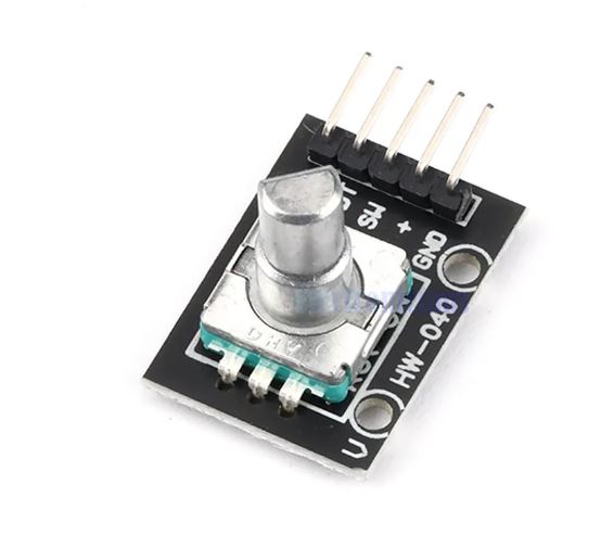 Encoder module KY-040 trông giống 1 module biến trở nhưng có ngõ ra dạng xung số. Bằng việc xoay núm vặn, ngõ ra xung của 2 kênh sẽ thay đổi với 1 độ lệch pha xác định (90độ) giúp phân biệt được chiều xoay.