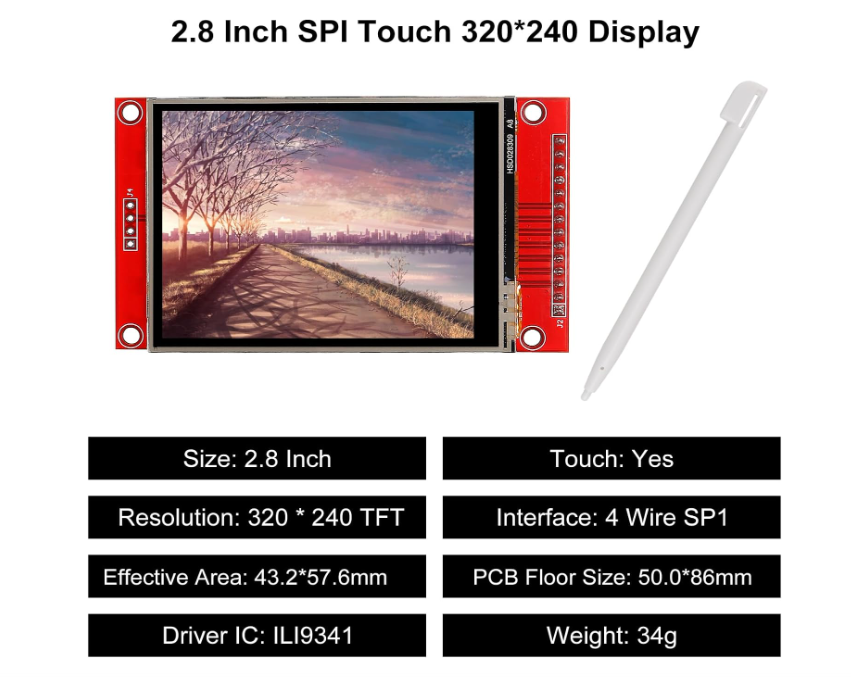 Màn hình LCD TFT cảm ứng điện trở 2.8 inch ILI9341 giao tiếp SPI được sử dụng trong các ứng dụng điều khiển cảm ứng và hiển thị, màn hình sử dụng giao tiếp SPI nên rất dễ giao tiếp và sử dụng, giúp bạn xây dựng giao diện điều kiển cảm ứng trên màn hình 1 cách chuyên nghiệp.