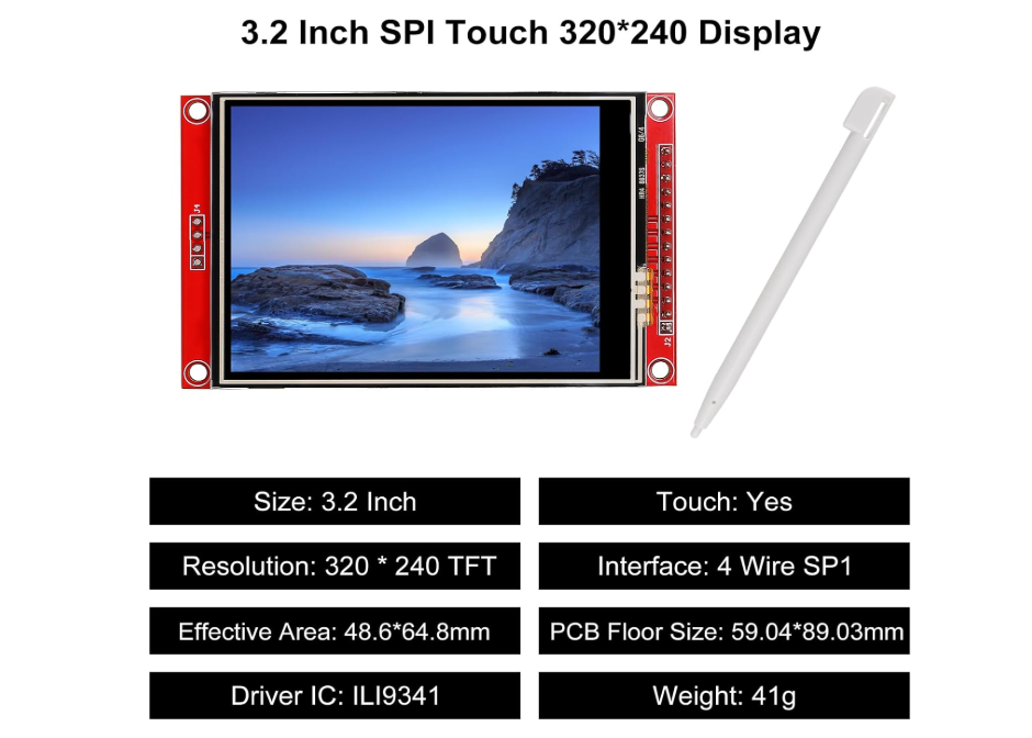 Màn hình cảm ứng TFT 3.2 inch ILI9341 giao tiếp SPI được sử dụng trong các ứng dụng điều khiển cảm ứng và hiển thị, màn hình sử dụng giao tiếp SPI nên rất dễ giao tiếp và sử dụng, giúp bạn xây dựng giao diện điều kiển cảm ứng trên màn hình 1 cách chuyên nghiệp.