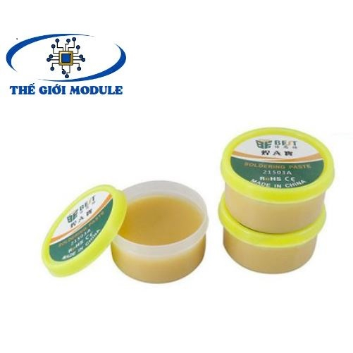Mỡ hàn BEST 150G dùng để quét lên chân các linh kiện hoặc PCB trước khi hàn. Mỡ hàn có tác dụng làm giảm nhiệt độ nóng chảy của thiếc, đồng thời tạo thêm độ bóng đẹp và khả năng bám dính thiếc vào mối hàn.