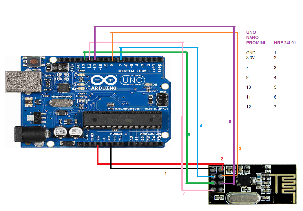 - Các chân kéo ra trên module: VCC, CE, CSN, SCK, MOSI, MISO, IRQ, GND.