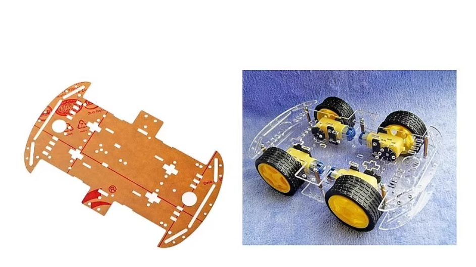 Tấm khung xe mica 4WD 4 bánh là sản phẩm khung robot 4 bánh dùng trong các ứng dụng học lập trình, chế tạo robot, đồ chơi điều khiển, mô hình xe điều khiển từ xa..vv.